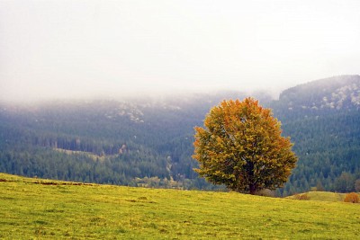 Раніца. Цішыня. Нікога ня бачна. Толькі быццам бы льецца па пагорках мерная песня званочкаў...