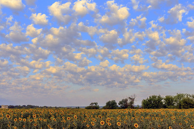 Утром, август начинается... У поля с подсолнухом. Когда поднимается рассветное солнце. Поле с подсолнухом под облаками.. И облака сформированные утром рябью после рассвета..