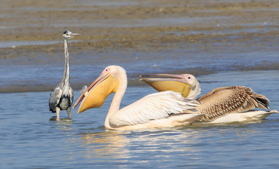 Три в одном - цапля, пеликаны, рыба. Всё сошлось, к тому же всё в фокусе!