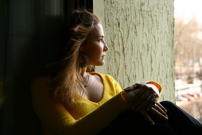 модель - Вероника Чернявская в окне четвертого этажа Журфака