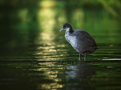 , Практически с одного уровня снято. Лысуха на бревне стоит утопленным в воде, а я в воде по грудь в камышах, так что обе мы камышницы (второе название птицы)