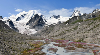Долина реки Талдура Горный Алтай. Пик Иикту (3936) - высшая точка Южно-Чуйского хребта и двуглавая гора Ольга (3734) венчают самый большой по площади ледник Алтая Талдуринский (28,2 кв. км). Отсюда и берёт своё начало река Талдура. |