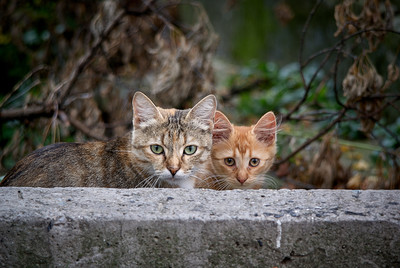 Случайная встреча, бездомная кошка со своим ребенком. Наверно им хочется иметь свой дом....