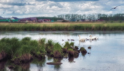 лебеди, речка, улица