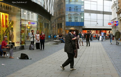 Танго с куклой Тонко, трогательно исполняется это удивительное, необычное танго на улице города Брауншвайга. А вокруг спешат люди по своим делам или неторопливо прогуливаются, и почти никто не останавливается, чтобы на миг соприкоснуться с искусством.. https://www.youtube.com/watch?v=zgiNbxFjzL8 |