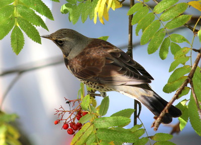 Прилетели дрозды на рябину.