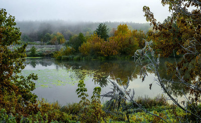 Утренние заморозки и туман. Озеро Сосновое. Мещера.