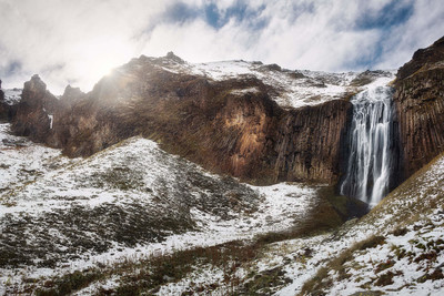 Водопад Терскол Водопад Терскол Вишенкой на торте первого дня знакомства с Приэльбрусьем стал водопад Терскол, который находится в одноименном ущелье. Погода и прогноз на ближайшие дни не радовали голубым небом. А в этот день моросил мелкий противный дождь. Над ущельем висели серые тучи, скрывающие от нас всю здешнюю красоту. Несмотря на всё это безобразие, решили идти, пока станет совсем не комфортно. Т.е. пока не промокнем) И это было верным решением. Видимо за хорошее поведение погода смилостивилась. Ветер стих и пока я развлекался с фотоаппаратом около водопада, делая очередной дубль), заметил в небе над водопадом голубые просветы. Ещё немного и выглянуло солнце! И вот тут перед нами открылась такая невероятная красота, что эмоции просто зашкаливали. Вид на ущелье, на окружающие нас величественные горные вершины. Затвор фотоаппарата работал на износ) |