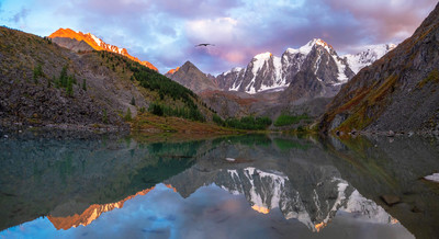 Один из тихих вечеров ранней осени на Верхнем Шавлинском озере. Алтай.