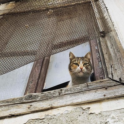 Cat is looking from a window, maybe waiting for someone