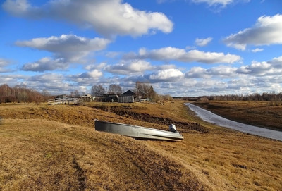 А работа интересная,вернее сюжет!Видно когда была вода большая,поэтому и лодку повыше подняли...Нравится!