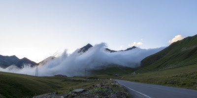 Словно вата,или пуховое одеяло как-бы передвигалось с гор на дорогу..Очень интересная работа! Успехов вам!
