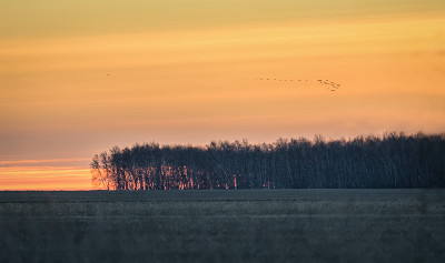 Солнце встаёт.. нет у меня опыта снимать до восхода.. сегодня, снято в степи, холодно, птицы готовятся к своему перелёту, но пока что они летят с озера на опустевшие поля.. как поняла, это клин серых гусей.. |