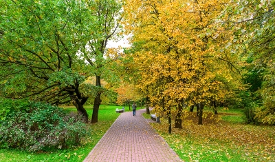ранний октябрь, самое неустойчивое в цвете))) стороны тропинки еще зелено, на на другой золотая осень - красиво!