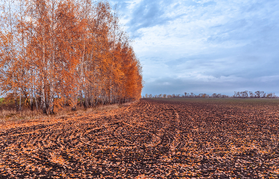 Опавшие листья сильнее проявили борозды пахоты и создали интересный узор!
