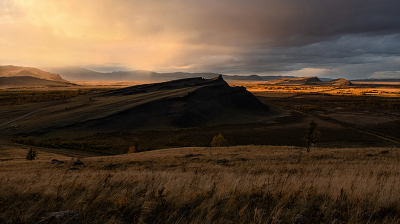 Закатное солнце подсветило тучи.