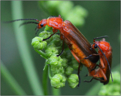 Спаривание жуков мягкотелок наверное самый распространенный сюжет в макросъемке.