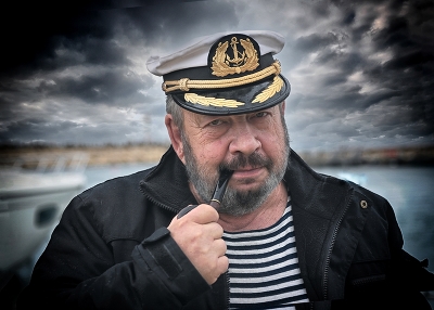 Почему бы ему не носить фамилию Врунгель? Такой мог бы управлять яхтой "Беда"! В целом мне понравилось. Мне хотелось бы видеть у трубки приоткрытый раструб и тёмные пятна внизу в углах чуть осветлить.