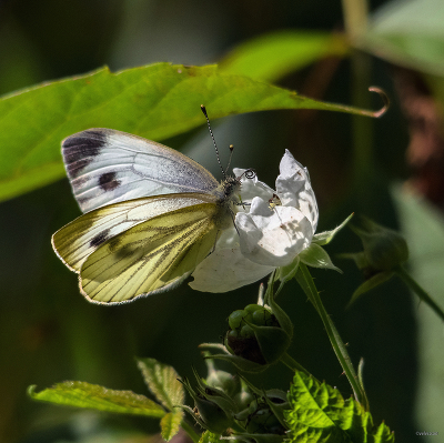 Капустница, или Капустная белянка (Pieris brassicae) на ежевике сизой