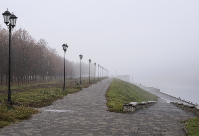 ,Стена тумана загородила противоположный берег Оки...Он высокий,интересный!