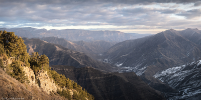 Дагестан, Кавказские горы. Одна из лучших обзорных точек горного Дагестана у поселка Хучада. Вид на долина реки Аварское Койсу