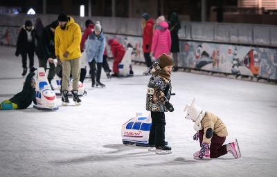 На катке, первые шаги