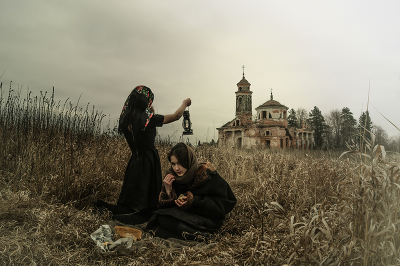 Драматизмъ , хлебушек из Пятерочки , дерюжка , газета Искра , дедушкина дубленка , бабушкин оренбургский пуховый платок., руины и гнетущий пейзаж ,все вроде бы соответствуют картине Перова.. Одно не понять пытливому уму , кому оне семафорят керосиновой лампой средь бела дня ?