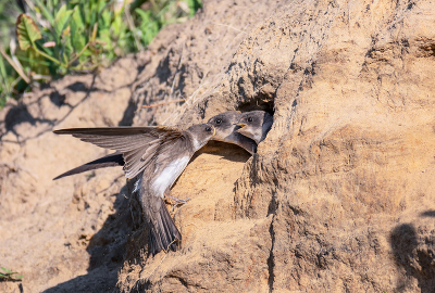 Svetlana Shapiro, Это родитель, не приземляясь - слёту! И видно, что нижней частью клюва птенца .. наверное, больно родителю делает! на другом снимке серии второй птенец клюёт счастливчика в "щёку", т. к. не ему опять, а собрату повезло (не стану загружать здесь серию).. Спасибо, Светлана!