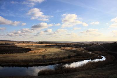 Поле, река, небо,облака,тени