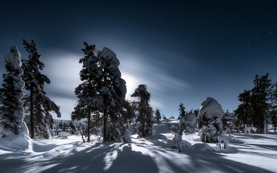 В ожидании полярного сияния при свете полной Луны.