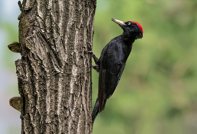 Желна́. Желна́. (лат. Dryocopus martius) Лесная птица из семейства дятловых, распространённая в полосе лесов Евразии. Длина 42—49 см, вес 250—450 г, размах крыльев 64—80 см. Оперение взрослого самца блестяще-чёрное, за исключением верха головы, который имеет ярко-красное пятно в виде шапочки от основания клюва до затылка. |
