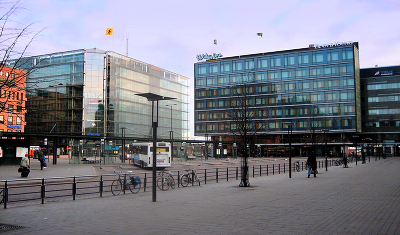 Утром на площади в Хельсинки возле ж/д вокзала