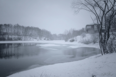 Незаурядный домик стоит на высоком берегу. Нравится работа!