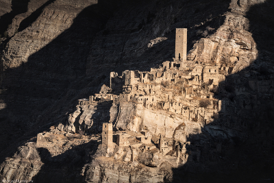 "Старый Кахиб" Село Старый Кахиб выглядит как декорации к фильму жанра фэнтези. Дома из камня и боевые башни построены прямо на неприступных скалах на отроге горы. Кахиб является одним из древнейших аулов Дагестана. Когда-то через это ущелье проходил Малый Шелковый Путь. Часть построек, в том числе и башни, датируются VIII-X веками. После принятия ислама в XIII-XVI здесь была построена мечеть. Сейчас Старый Кахиб это город-призрак |