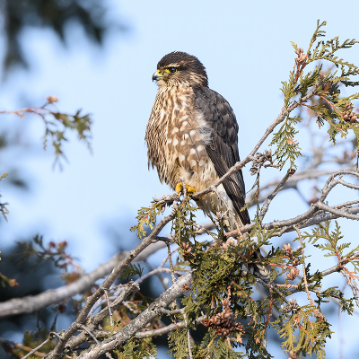Merlin Дербник Распространённый, но достаточно редкий вид. Гнездится в Северной и Восточной Европе, лесной и лесостепной зоне Азии и в Северной Америке. Охотится в основном на мелких птиц, в меньшей степени на грызунов, ящериц и насекомых ======== The merlin (Falco columbarius) is a small species of falcon from the Northern Hemisphere, with numerous subspecies throughout North America and Eurasia. |