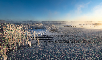 Хрустальная россыпь на воде. Для Вас утро было удачным. А вода у вас всю зиму открытая? Красивый снимок.
