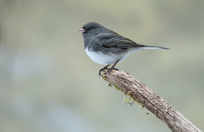 Dark-eyed Junco Серый юнко. Птица с невероятными вариациями цвета оперения между популяциями. Как правило, с серым, белым и оттенками коричневого. У всех розоватые клювы и белые внешние рулевые перья. Молодые особи- полосатые. Гнездится в различных лесных местообитаниях, особенно с хвойными деревьями. Зимой встречается в любых лесах, часто стаями. Обычно кормится на земле в поисках семян, но также любит кустарниковые заросли или сорняки. Посещает кормушки. Подвиды включают: грифельно-серый (широко распространенный), орегонский коричневый(запад), розовобокий (Скалистые горы Канада), сероголовый (Скалистые горы и юго-запад США до Мексики), красноспинный (центральная Аризона и Нью-Мексико) и белокрылый ( гнездится в Блэк-Хиллз, зимует в основном в Колорадо). |