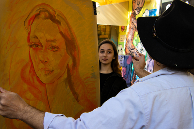 Николай Семёнов, Он,вполне,профессиональный художник,по образованию "художник оформитель"..Иллюстрировал книги..Мне его манера нравится..Работае он сангиной..Видел его ЧБ работы..Очень близко к гиперреализму..Так что рисовать он умеет..А то,что вы видите-так это уличный портрет..Он,и правда,так видит..И он,как сам мне сказал,рисует "своё представление о модели"..Модели довольны