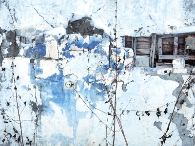 Зима, стена, растения.