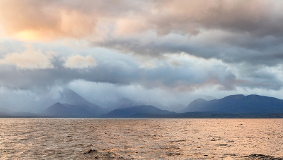 Осенью, у туманного острова. Охотское море. Панорама из 4-х кадров