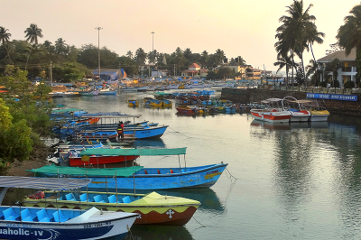 , Правильно, это Гоа, устье реки Бага, вдалеке, под пальмами виден кусочек моря! Днём все лодки и катера задействованы в рыбной ловле и прокатом туристов!