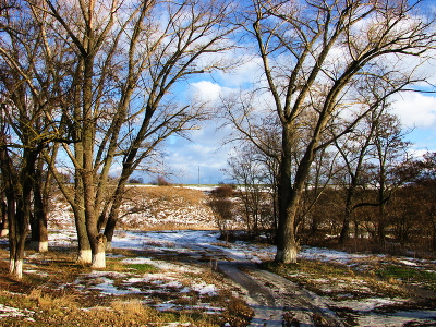 Снег тает, голубое небо