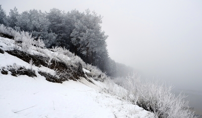 Зимнее утро и туман над рекой. Левом берегу Оки.