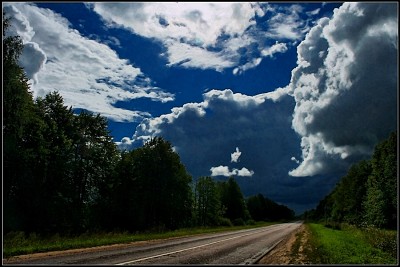 А дальше уже была сплошная "крыша" из тучь, через которую солнце не могло пробиться до земли и дороги.
