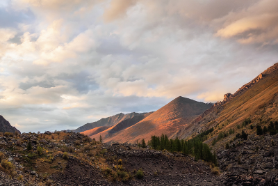 Бронзовый закат в окрестностях Шавлинских озер. Алтай.