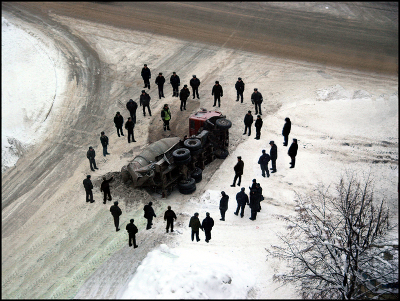 Загадка: Сколько ГАИшников требуется для того, чтобы поднять автоцементомешалку?