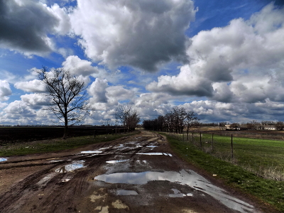 Дорога, деревья,небо,облака