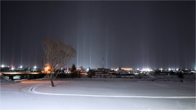 Ele Na, Было три часа ночи (засиделся за компьютером) и перед тем, как лечь спать захотел посмотреть на градусник какой минус на улице. Глянул, а там - световые столбы. А так как такое бывает редко, оделся и на улицу снимать. Короче, лёг уже в четыре утра довольный и с "уловом". А ведь мог и в этот раз пропустить.