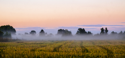 Красиво туман стелется над полем!