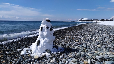 Да, не часто увидишь в Сочи на пляже снеговичек - интересный у нас год !!!!!!!!!!!!!!!!